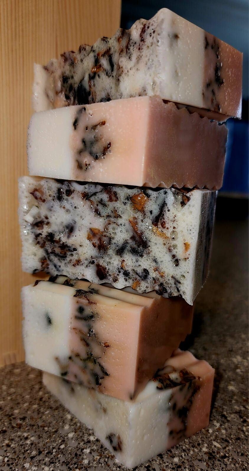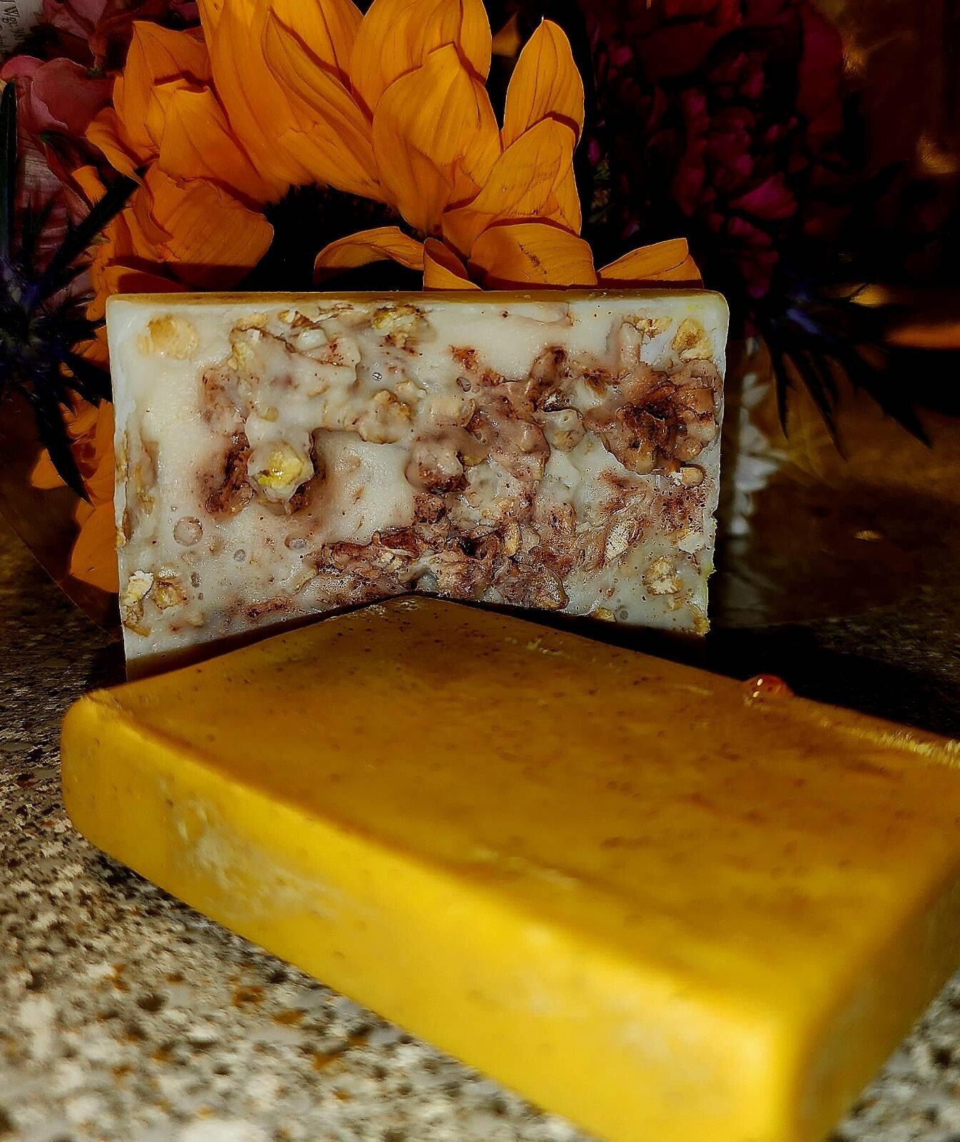 Handmade soaps ranging from standard scent free soap to eczema relief. Our soaps are made with all natural ingredents, shea butter and goat milk. Eczema relief soap works awesome on littles all the way to adults with soothing oats and shea butter. We also offer a turmeric soap with anti-inflammatory and brighening properties, helpful to use on acne-prone and sensitive skin. It leaves skin feeling soft, hydrated, and helps promote cell turnover for healthier looking skin. Faithfully fruitful also offers a very beautiful cornflower soap with bright blue cornflowers and added vitamin E oil to highlight its natrual antioxidants and soothing properties. Starting February of 2026 Faithfully Fruitful with offer soaps made with clay as well. All of our soaps are made in house and scented upon request with essential oils. We also do custom made soap based upon specalized skin needs. All soaps start at $9.00 for two bars. Specalized soaps may vary depending on product. All soaps come with a dark wood soap holder and soap bag.